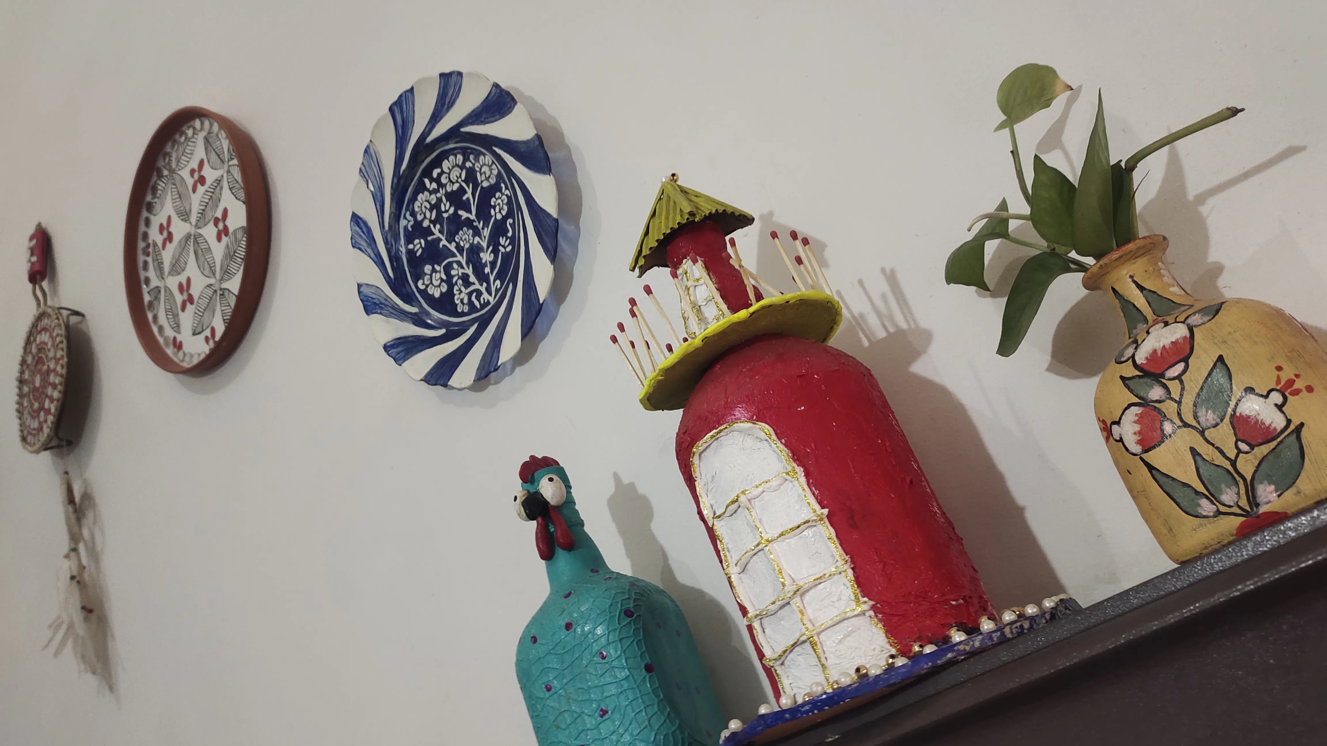 दीवारों पर एक से बढ़कर एक खूबसूरत पेटिंग, फूल,बड़े ही खूबसूरत पौधे उन्होंने बताया कि छत पर 550 से अधिक प्लांट है. 20 से 25 अच्छी क्वालिटी का फूल लगा हुआ है. जीवितीय पर्व में नोनी साग काफी महत्व रखता है जो आसानी से नहीं मिलता है. इसको भी गमले में अपने लगा रखा है.