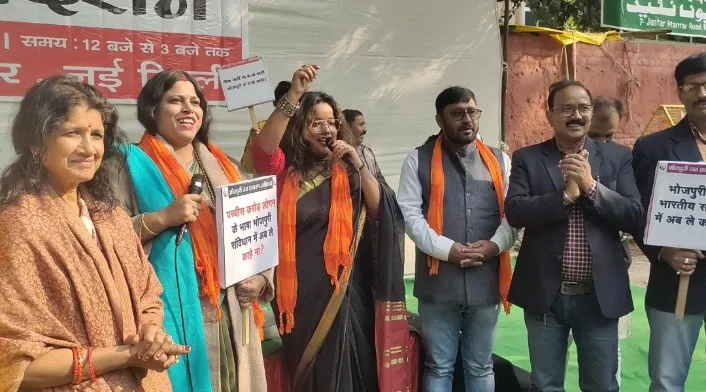 भोजपुरी भाषा को भारतीय संविधान के 8वीं अनुसूची में शामिल कराने की मांग को लेकर भोजपुरी जन जागरण अभियान मंच द्वारा रविवार को दिल्ली के जंतर मंतर पर विशाल धरना प्रदर्शन किया।
