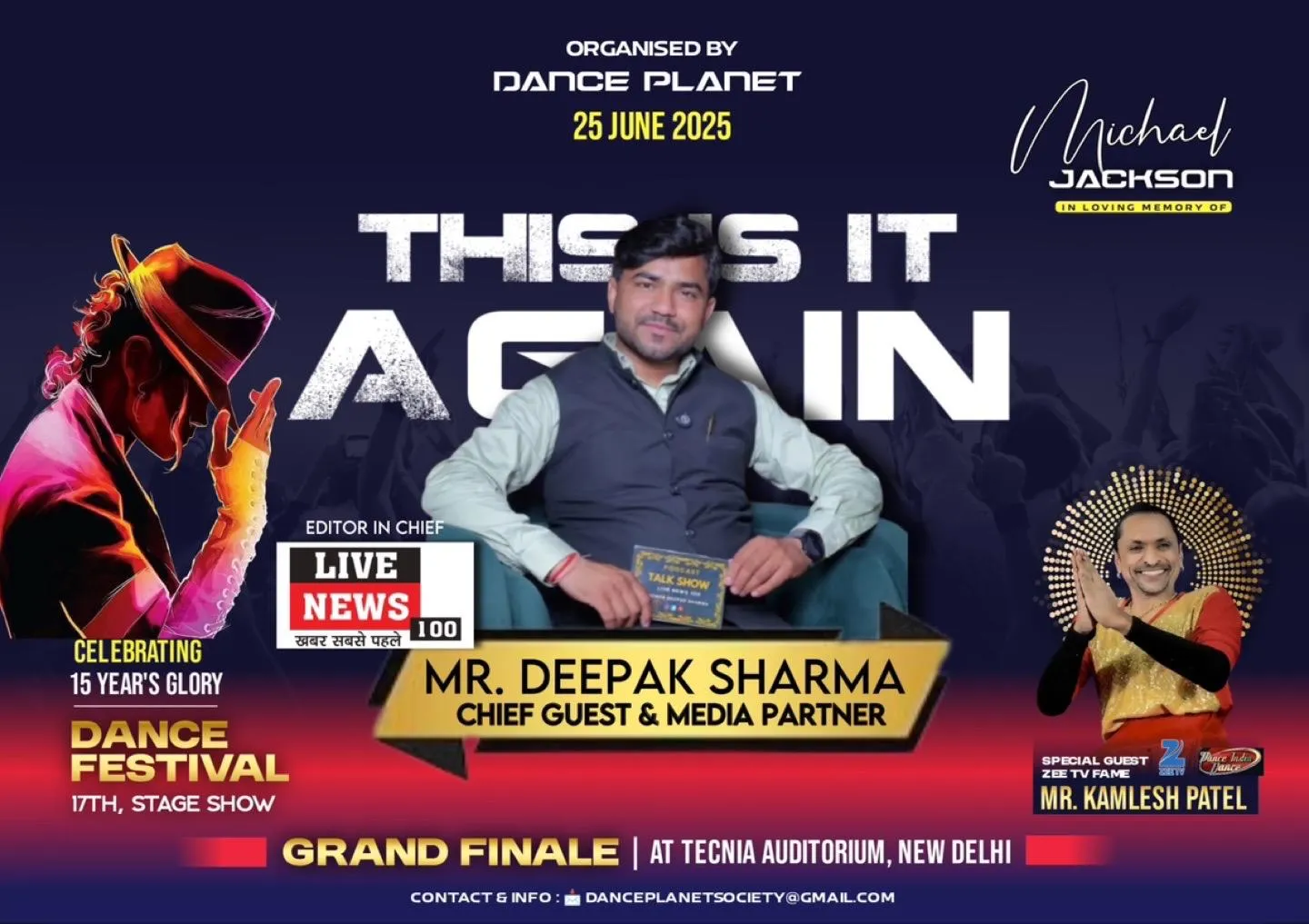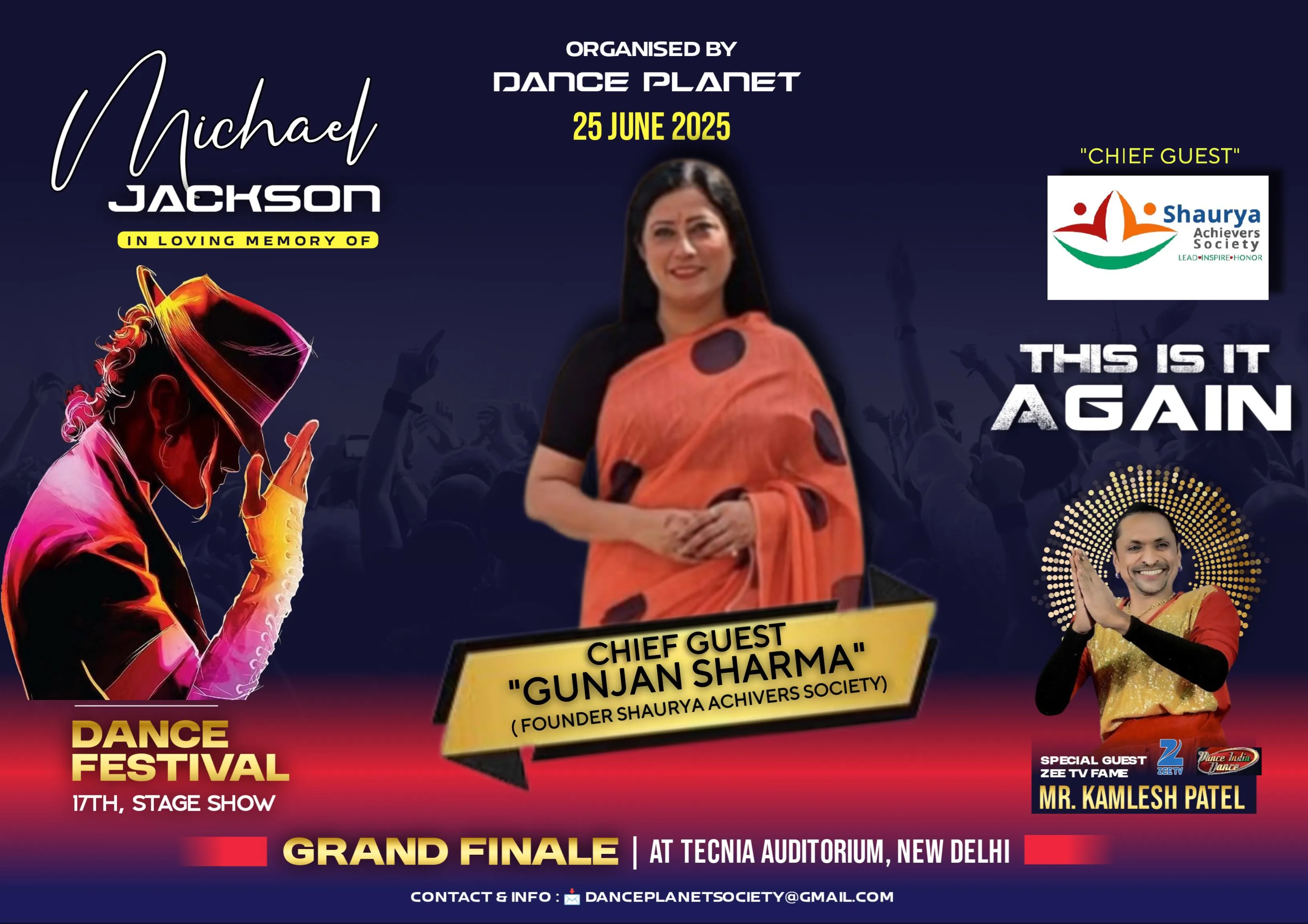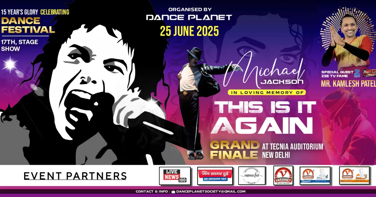 दिल्ली के पीतमपुरा स्थित टेकनिया ऑडिटोरियम में डांस प्लैनेट सोसाइटी अपनी स्थापना के 15 गौरवशाली वर्ष पूरे होने के उपलक्ष्य में एक भव्य डांस फेस्टिवल “This Is It Again” का आयोजन करने जा रहा है।