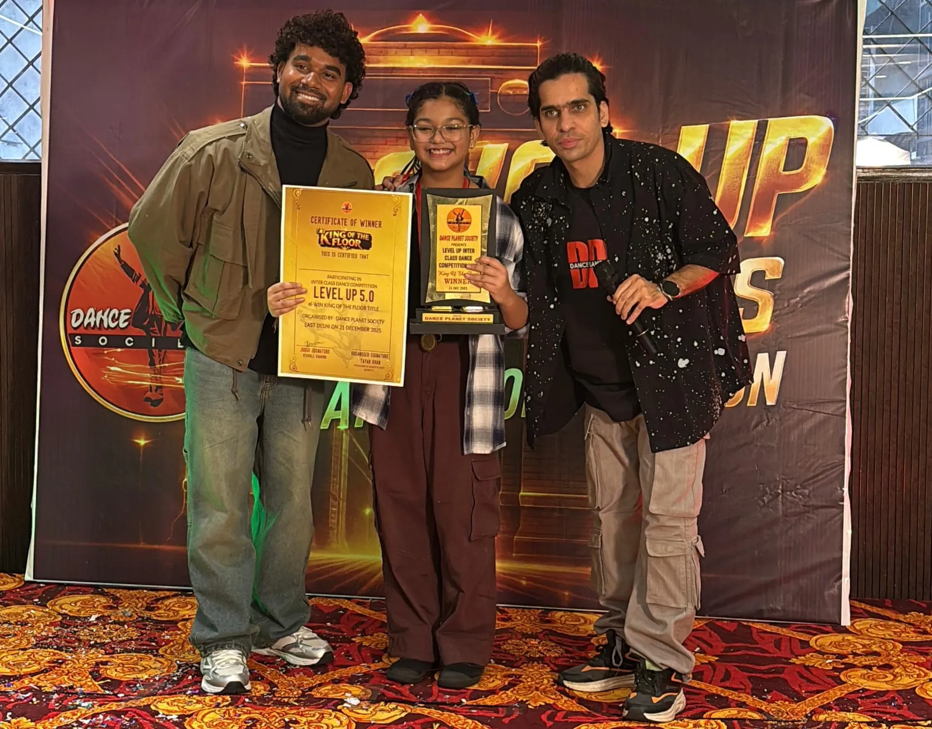 अंत में ‘लेवल अप’ का सबसे बड़ा खिताब किंग ऑफ द फ्लोर डांस प्लेनेट सोसाइटी की इंटरमीडियेट बैच की छात्रा "उन्नति वार्षने" को प्रदान किया गया। उन्होंने 40 बच्चों को पराजित करते हुए अपनी बेहतरीन परफॉर्मेंस से इस वर्ष किंग ऑफ द फ्लोर का खिताब अपने नाम किया।