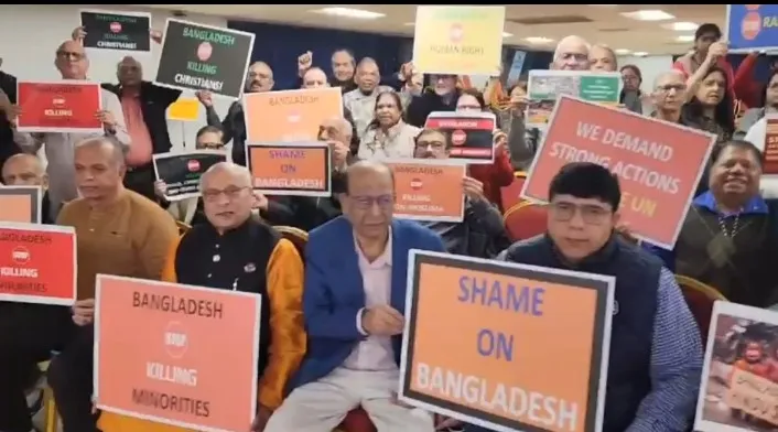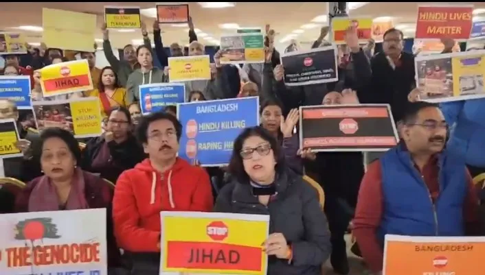 Special Report: Around 500 Hindu Americans got together for a peaceful protest regarding the atrocities happening against Hindus in Bangladesh from August 2024 at Rana Regan Center in Carol Stream (Chicago Suburb), IL. Same group had a peaceful outdoor rally 2 months ago. Mr Haribhai Patel, President Bhartiya Seniors of Chicago, welcomed all who came to this event and mentioned about how Hindu Mandirs are being destroyed and Hindus are killed in Bangladesh.